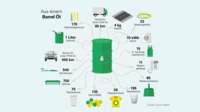 Etwa 0,1 Liter Rohöl werden für die Derivate Acrylnitril, Butadien, Styrol- und Polycarbonat benötigt, aus denen sich eine Fernbedienung zusammensetzt.